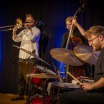 BIBERACH – Vor rund eineinhalb Jahren gewannen sie mit ihrer ungewöhnlichen Trio-Besetzung den internationalen Biberacher Jazzpreis gegen eine starke Konkurrenz. Nun ist es endlich gelungen, das überaus gefragte und vielbeschäftigte Trio zum Preisträgerkonzert nach Biberach zu holen. Den fulminanten Abschluss ihrer jüngsten Tournee durch Süddeutschland zur Präsentation ihrer neuen CD „Never Ending Story“ zelebrierte das bestens aufgelegte Trio vor einem hell begeisterten Publikum im gut gefüllten Jazzkeller. Kurzweilig und voller Leidenschaft musizierten die Drei auf Posaune, Kontrabass und Schlagzeug, ohne dass das Fehlen eines Harmonieinstrumentes überhaupt ins Gewicht fiel.